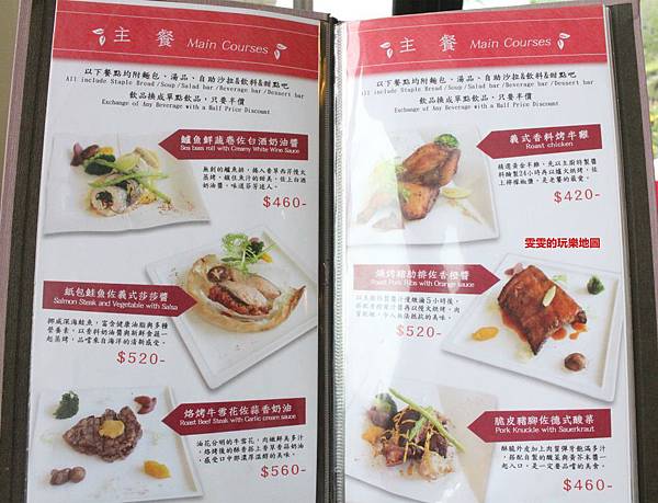 除了主餐的部份都有附上湯品/麵包/沙拉/甜點/飲料